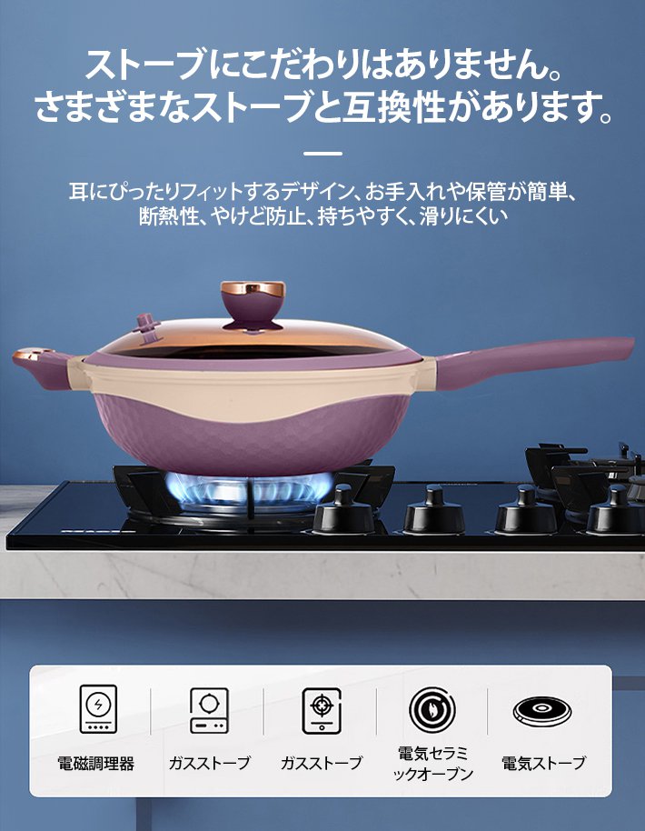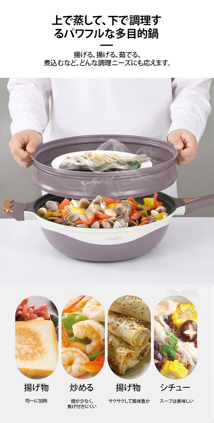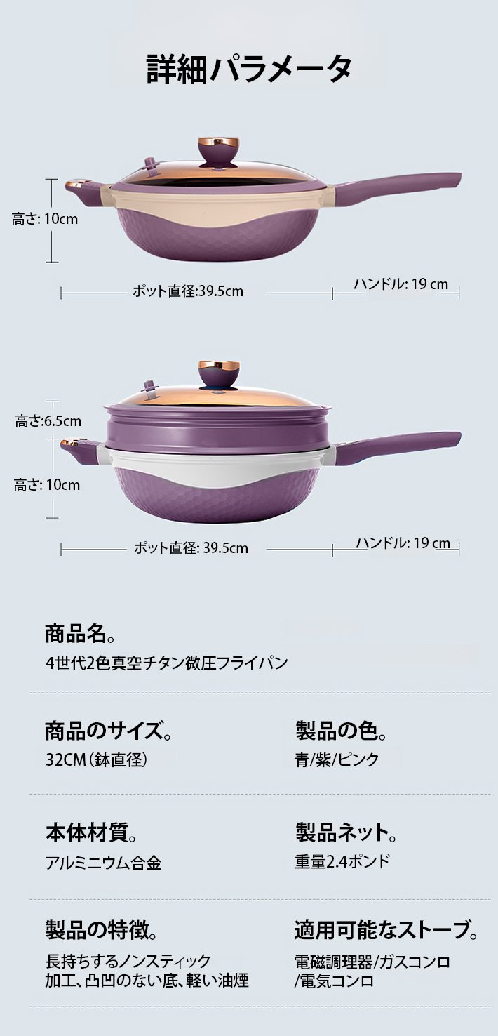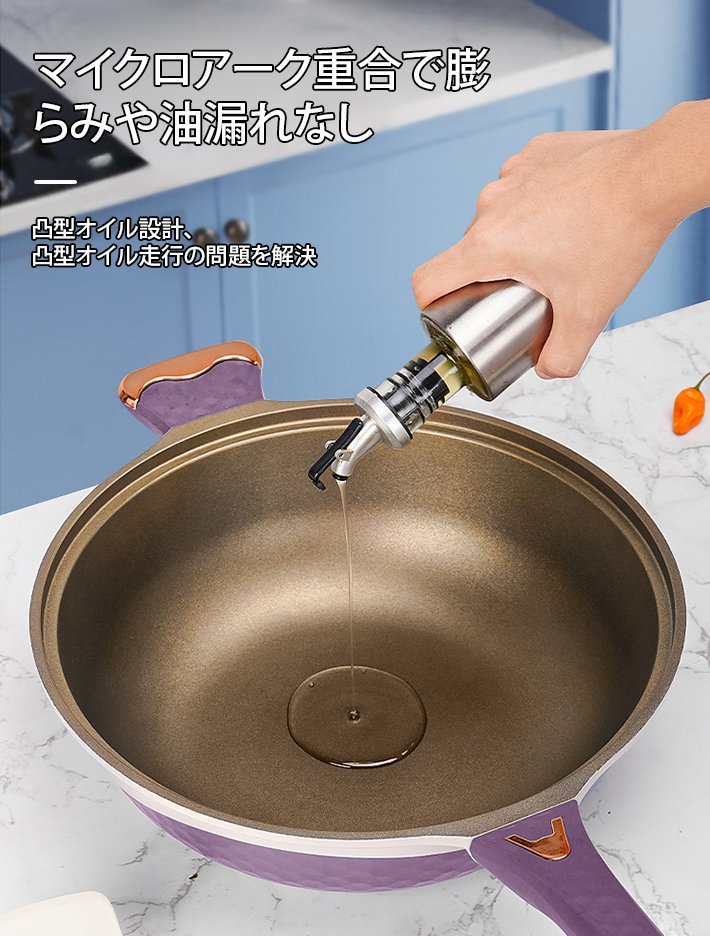 ツートンカラーのチタンテフロン加工中華鍋は、優れた耐久性と調理能力を備えています。今すぐ購入して、プロのシェフのような調理結果を手に入れましょう!